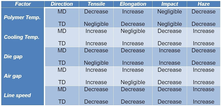 Selection of the correct raw materials together with the processing parameters has a strong influence on film properties.
